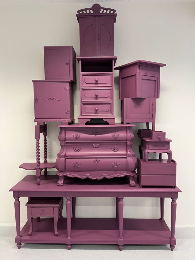 Voor buurtcentrum Bloemrijk maakten we deze stapelkast die gemaakt is van afgedankte kastjes van buurtbewoners.