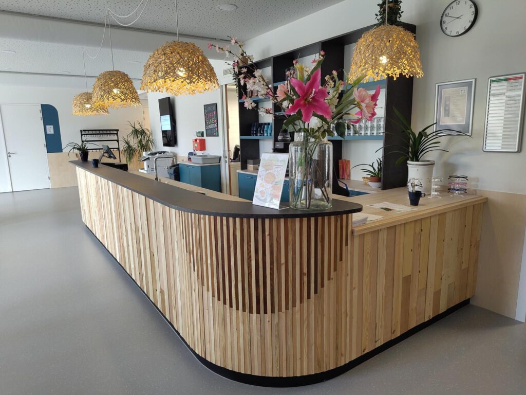 Marijn Dee maakte zo’n mooie balie dat we ermee op de Dutch Design Week zijn beland! In de stand van het Netwerk van Circulaire Ambachtscentra, om precies te zijn. Op de balie nog zo’n juweel: een lamp van Jetske Drijver.